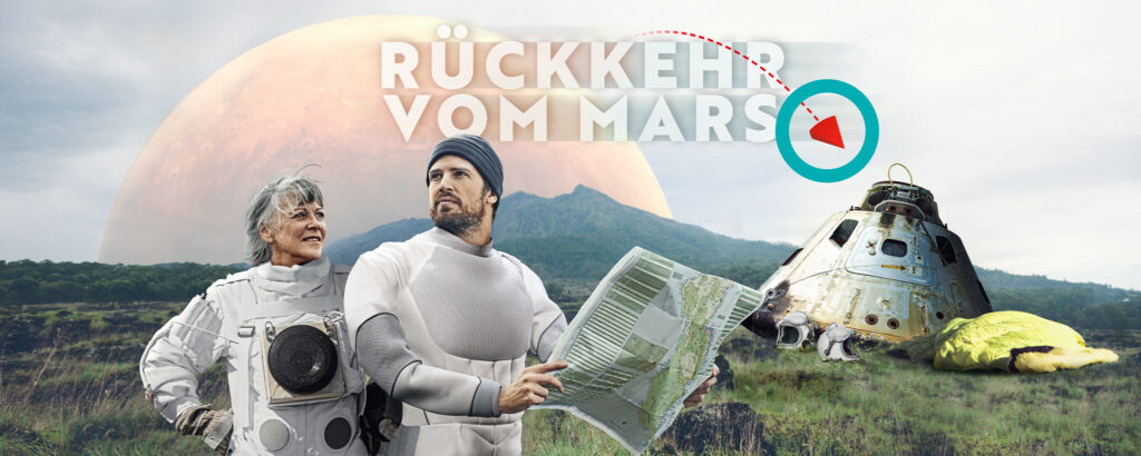 »Rückkehr vom Mars« kann virtuell oder physisch durchgeführt werden. »Rückkehr vom Mars« ist sehr gut in einem Gesamtkontext planbar, da die Durchführung exakt 60 min. dauert (ohne Reflexion).