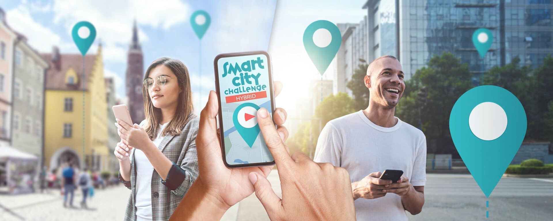 Die Smart Hybrid Challenge ist so konzipiert, dass sie in jedem städtischen Umfeld weltweit stattfinden kann. Wir beziehen Häuser, Ampeln, Haltestellen, Geschäfte oder Passanten in die Aufgaben ein.